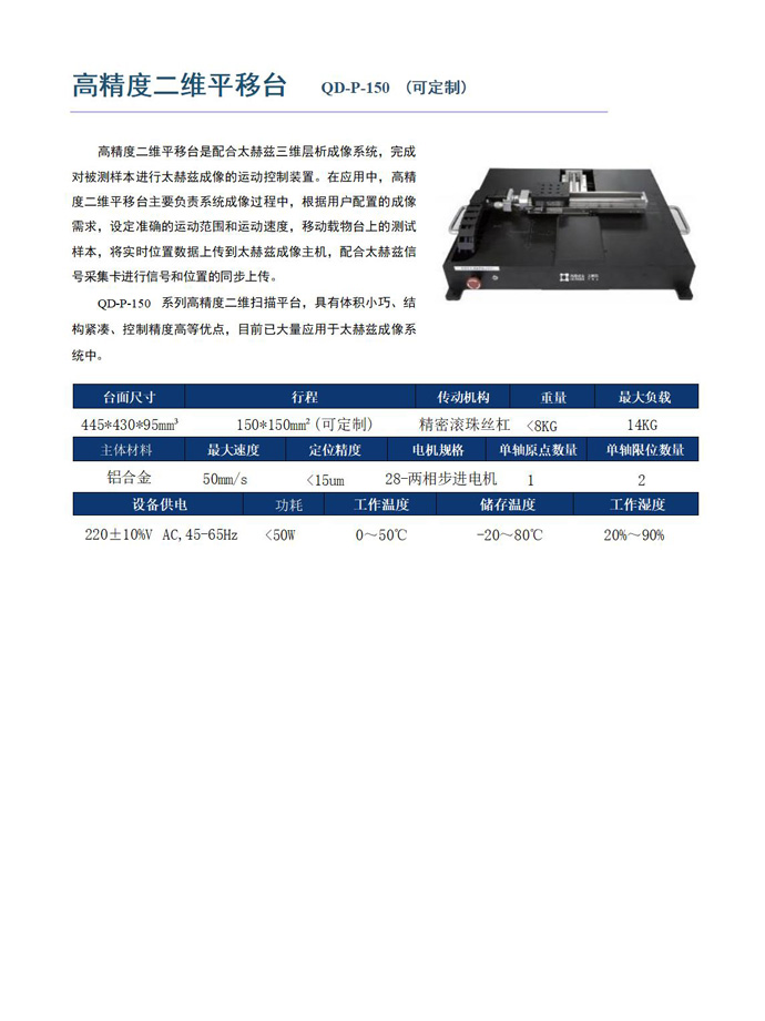 QD-P-150系列高精度二维扫描平台,具有体积小巧、结构紧凑、控制精度高等优点,目前已大量应用于太赫兹成像系统中。